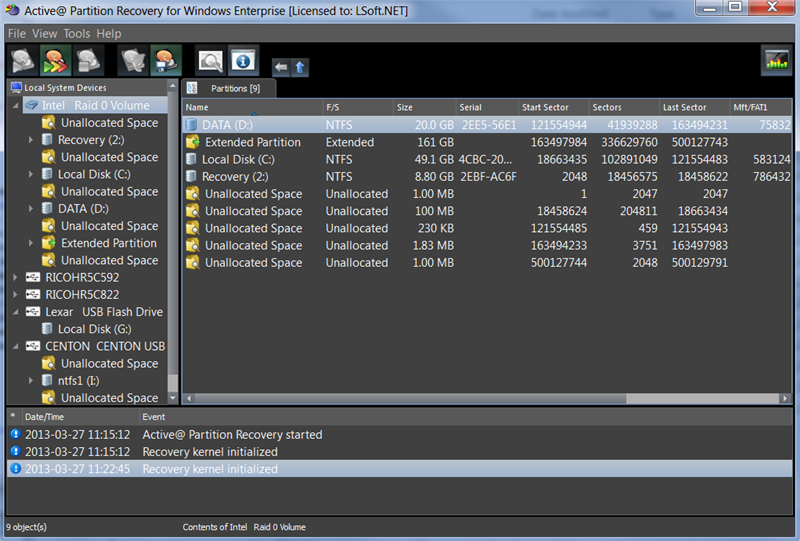 Active@ Partition Recovery helps to recover deleted, damaged or re-formatted partition on PC hard disk drives. It can backup the MBR (Master Boot Record), partition table, boot sectors and restore partition info from the backups.